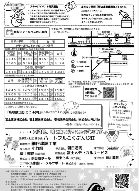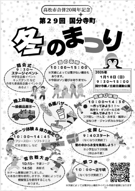 | |    | 連絡先 主 催:国分寺町まつり協議会 主 管:国分寺町冬のまつり実行委員会 TEL: 087-874-7050 | | |